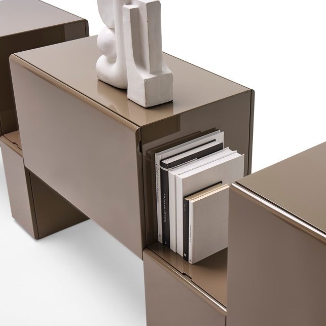 FRACTAL è una credenza e mobile TV con struttura in mdf laccata goffrato o lucido in tutti i colori come da campionario oppure in frassino tinto moka. Contenitore composto da moduli dove i pieni e i vuoti da una parte permettono di organizzare e riporre ciò che non vogliamo mettere in mostra, dall’altra ci consentono di creare set up personali fatti di libri, oggetti, vasi, fotografie, piccoli quadri.
