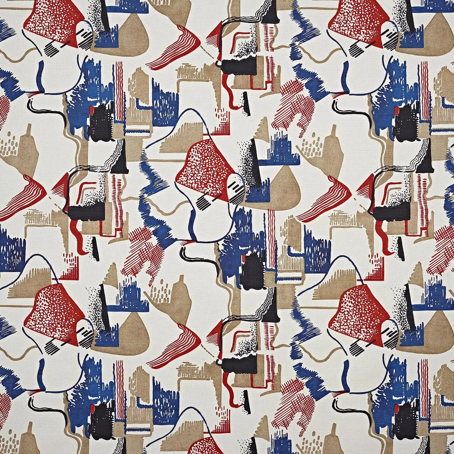 Delicatamente stampato su metis, questo disegno datato 1928 e proveniente dagli archivi della Maison Pierre Frey, evoca una cartografia astratta e colorata.